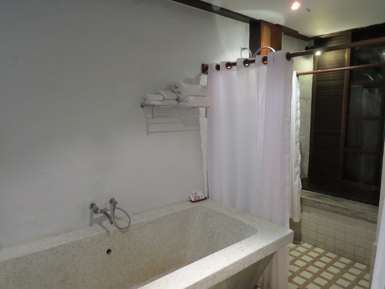 バスルームには石棺のような大きなバスタブ、しかし水量がないのでなかなか一杯にならない、結局1度使っただけであとはシャワーのみ。そしてこれも水量少なく温度が上がりにくい。
