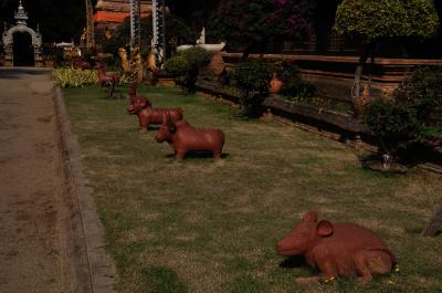 旧市街の北西、堀の外にあり歩いて行く場合、道路の横断に一苦労するが、派手な寺院の多い中総チーク造りの建物は異彩を放つ。本堂は3段重ねの漆黒の屋根で内部の装飾もとても渋い。16世紀に造られた煉瓦造りのチェディが悠々とたたずむ。