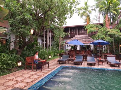 ボディソープ、シャンプーはあるが他は気持ちよくなし。しかし部屋はそこそこ綺麗でwifiも早くはないが使える範囲。朝食はジュース3種類とスイカ、パイナップルは美味しかった。メイン料理は品数が少なく、味も?すぐ近くに7イレブンがあるのが救い。一番の驚きはプール、同じ敷地じゃないんです。近くではあるが道路を隔てて斜め向う、小さいのは覚悟していたが「早く言ってよ!」思わず叫ぶ。ただこのホテルのアクセスの良さは抜群、旧市街もサンデーマーケットも、ナイトバザールも、ヌアサンマーケットも十分徒歩圏。さらにホテル前のロイコー通りはバーの大密集地。這ってでも部屋に帰れる。スタッフは親切で優しい。6日の滞在中不愉快なことは一度もなかった。毎晩ライブ演奏があり古い名曲メドレーでなかなかgoodでした。なんにしても安いからね。