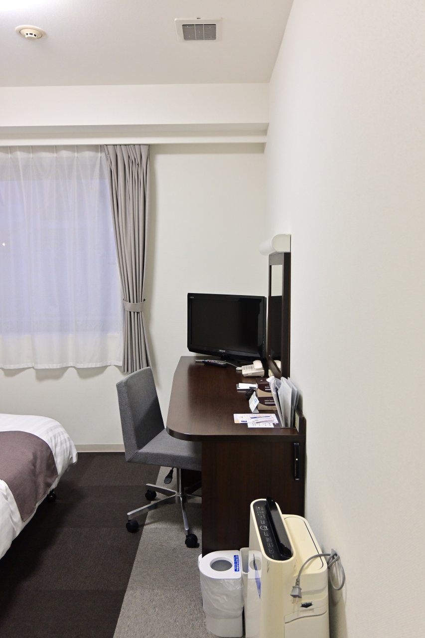 何処の地域でも好立地にあり、朝食込みで低料金で提供してくれているホテルです。岡山市で利用したことがありますが、部屋の造りや設備もほぼ同じです。最低必要な物は揃っているし、寝るだけの利用なら十分です。ただバスルームは狭い、もう少し広ければと何時も思います。しかしネット環境も問題無、無料朝食付きでの宿泊料金はお得感があると思います。