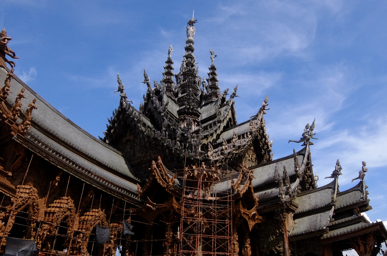 アジアのサグラダ・ファミリアと言われていると聞き宿泊しているホテルから近いこともあり訪れてみました。確かに全景を目にした時、思わず凄いと声が出るくらいインパクトがあります。木造建築でこの規模は凄いです。今も沢山の人が手を加えています。