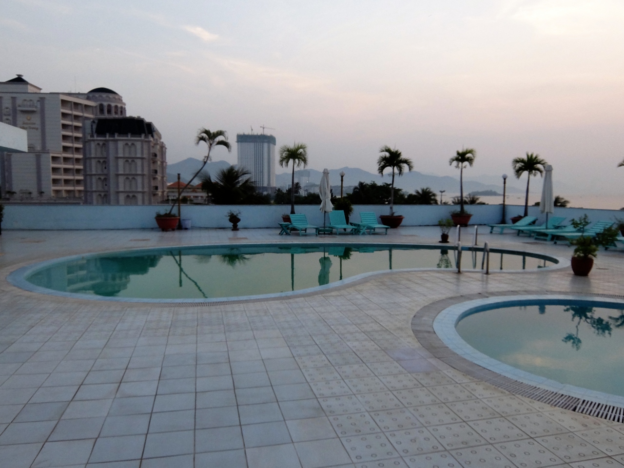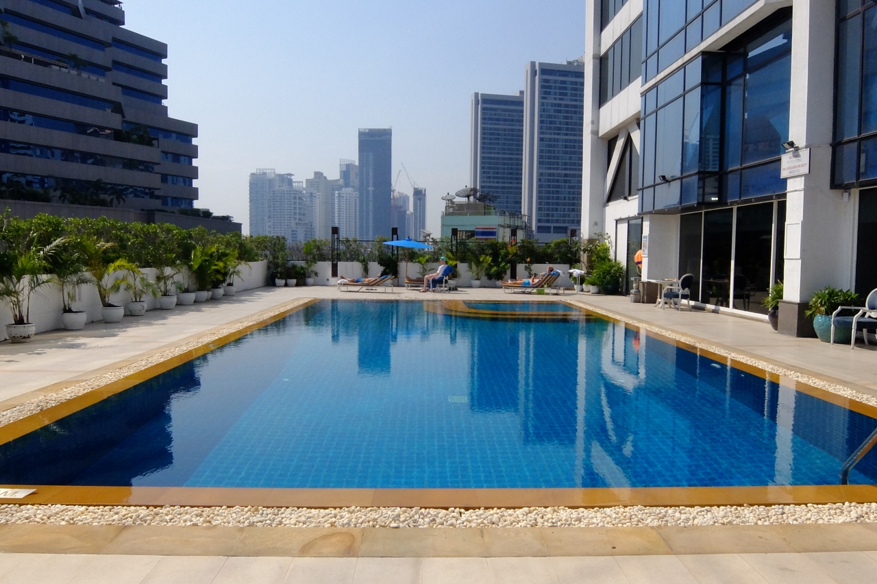 9階の東側に日当たりの良い屋外プール(周辺十分余裕があるのにデッキチェアは僅か4台、もっとも殆ど空いていた)、フィットネスルム(天井が低く圧迫感が強い)がある。