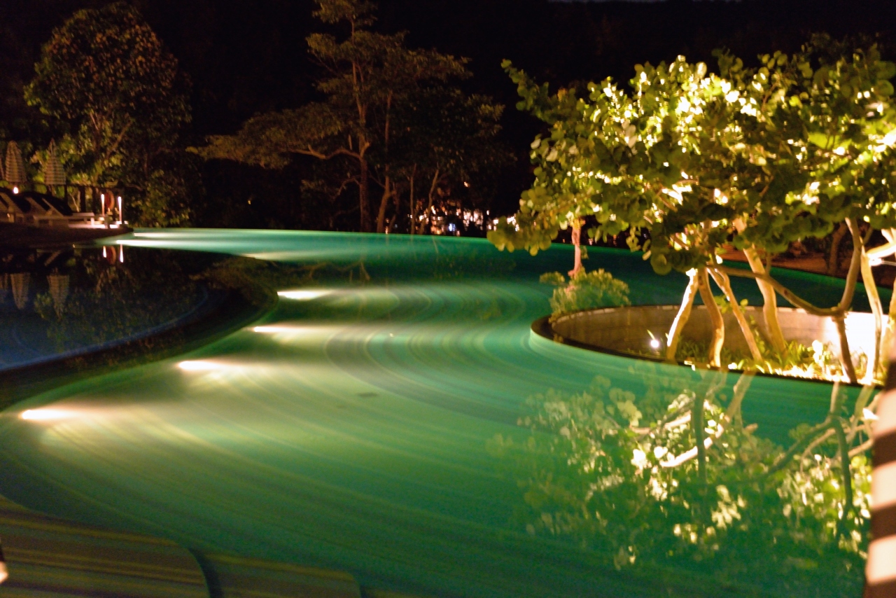 曲線を多用したインフィニティプール、ロビー、デッキなどとてもお洒落。