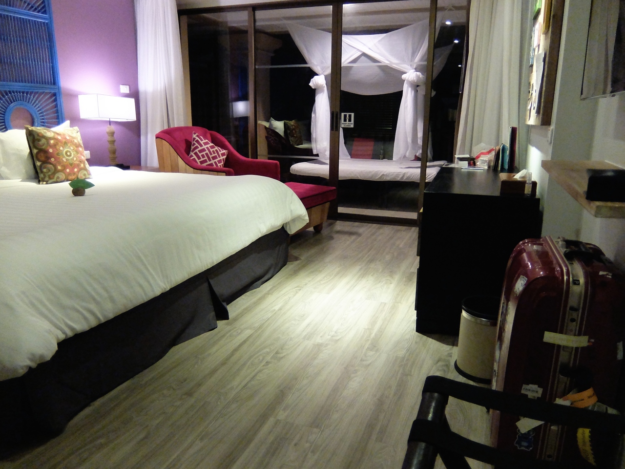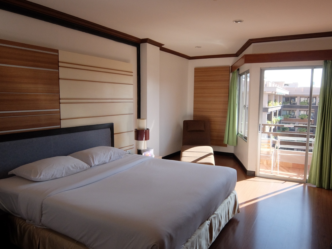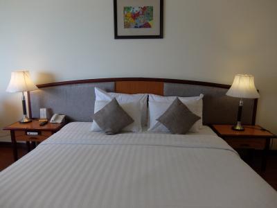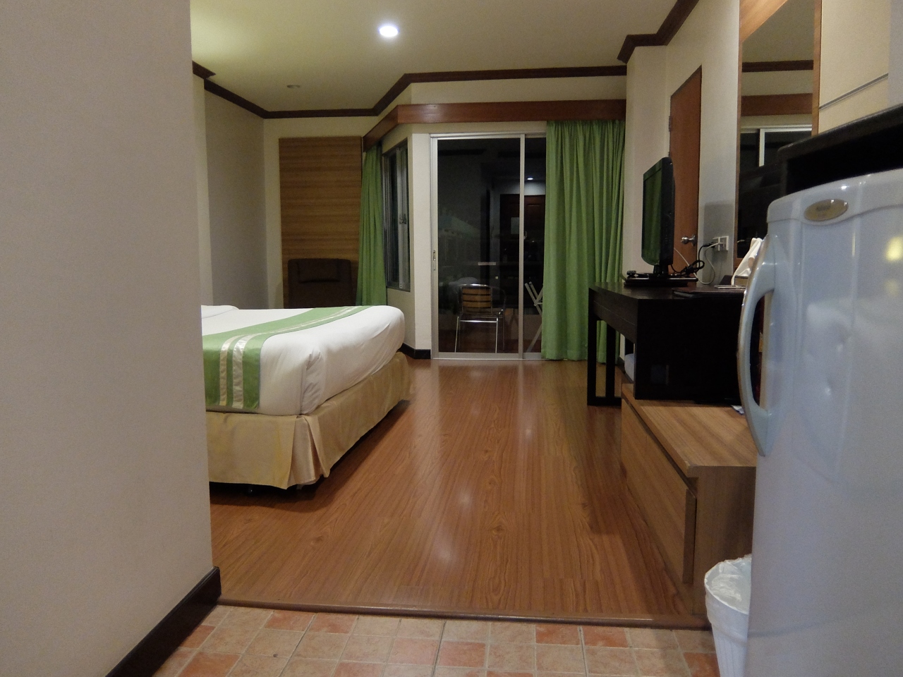 コロナ棟610デラックスクイーンサイズベッド室に宿泊。ここはアレカ、コロナ、エバグリーンの3棟あり結構大きいホテルです。ネットでの人気も高いので選びましたが、まずデポジットを現金で要求されます。部屋は古く(エバグリーン除く)、バスローブも室内履きも無し、Wi-Fiもの凄く遅い、バスルーム狭い(バスバスタブに固定シャワー)、フェイス・バスタオル共に薄い、バルコニーは狭い上にエアコンの室外機が有り洗濯物を干す以外使えない(エバグリーン除く)、朝食は毎日殆ど同じ、札にキーが付いている古いタイプのルームキーが1室1ヶのみでしかも札からきーが外せない、だから外出から帰ったときの暑いこと、いや初めての経験でした。それもこれも値段を考えると仕方ないのでしょうか。ホテル側もこの設定だからこんな物だろうというような意識です。