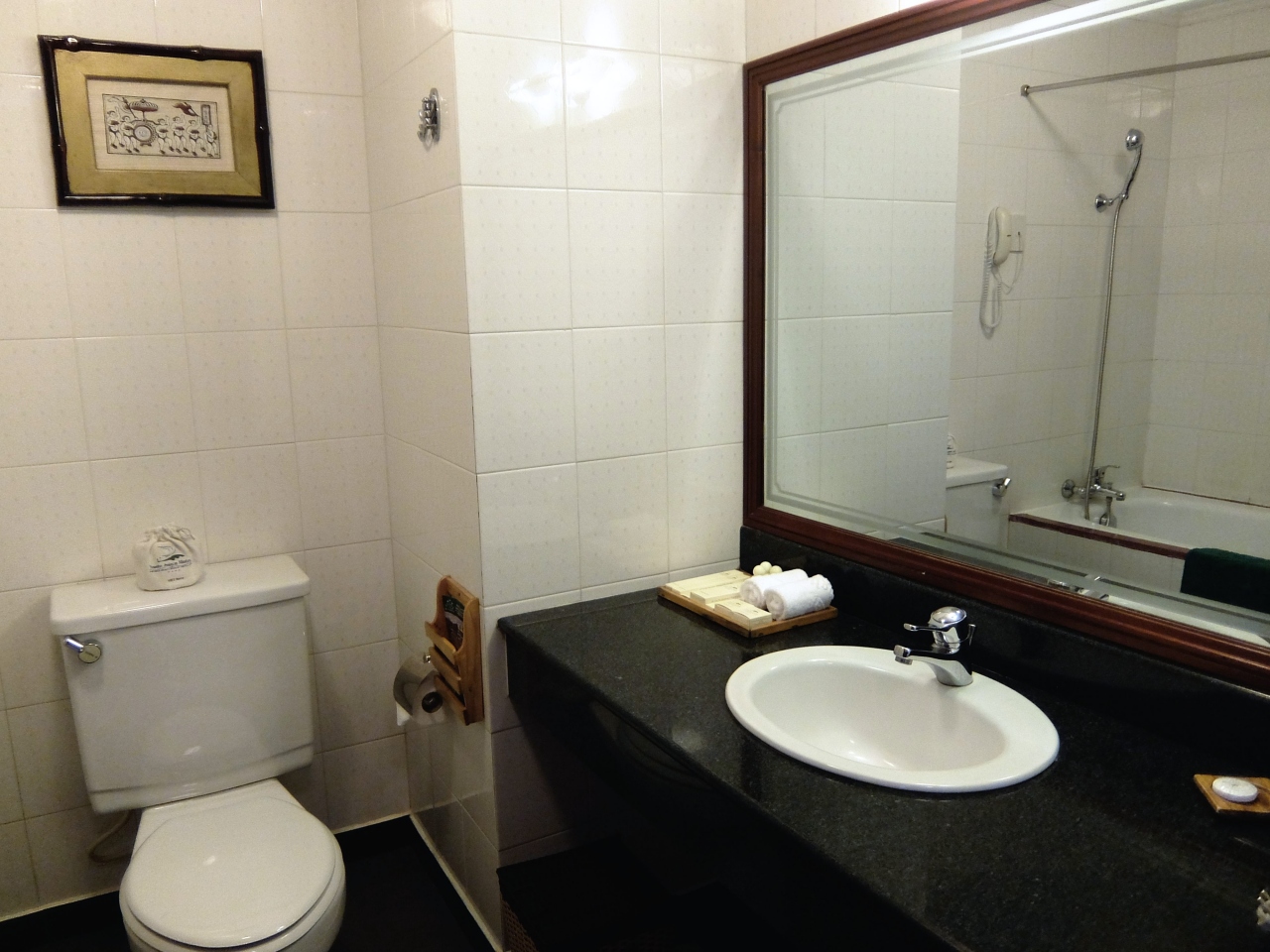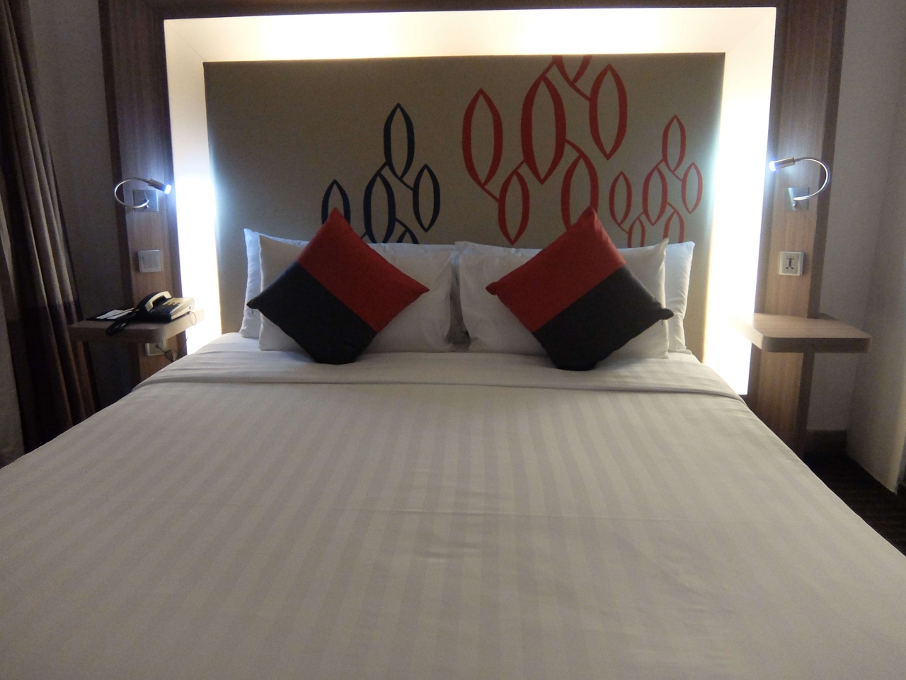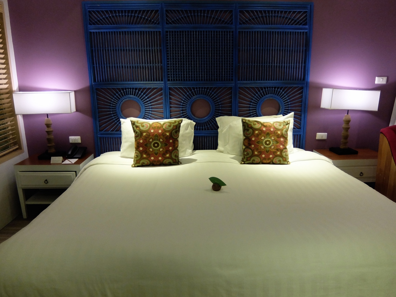 コロナ棟610デラックスクイーンサイズベッド室に宿泊。ここはアレカ、コロナ、エバグリーンの3棟あり結構大きいホテルです。ネットでの人気も高いので選びましたが、まずデポジットを現金で要求されます。部屋は古く(エバグリーン除く)、バスローブも室内履きも無し、Wi-Fiもの凄く遅い、バスルーム狭い(バスバスタブに固定シャワー)、フェイス・バスタオル共に薄い、バルコニーは狭い上にエアコンの室外機が有り洗濯物を干す以外使えない(エバグリーン除く)、朝食は毎日殆ど同じ、札にキーが付いている古いタイプのルームキーが1室1ヶのみでしかも札からきーが外せない、だから外出から帰ったときの暑いこと、いや初めての経験でした。それもこれも値段を考えると仕方ないのでしょうか。ホテル側もこの設定だからこんな物だろうというような意識です。