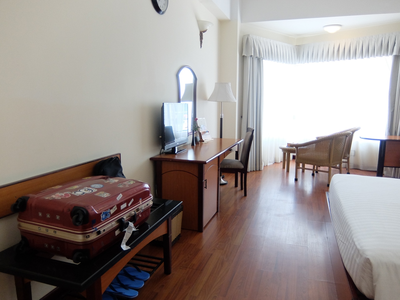 スーペリア・キングサイズベットルームに6泊、低価格のクラスだが広さも十分で大きな窓で明るく、バスルームも独立したシャワールームが広く(バスタブは無し)快適に過ごせました。全体に豪華さは無いもののとても綺麗に清掃されていて機能的です。