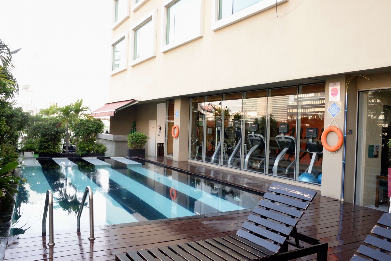 L階にあるプールも十分な広さがあり高層ビル群を眺めながらのんびりできますし、ジムやビューティサロンなどもありロビーも広々として気持ちがとても良いです。