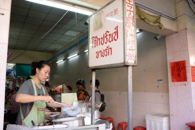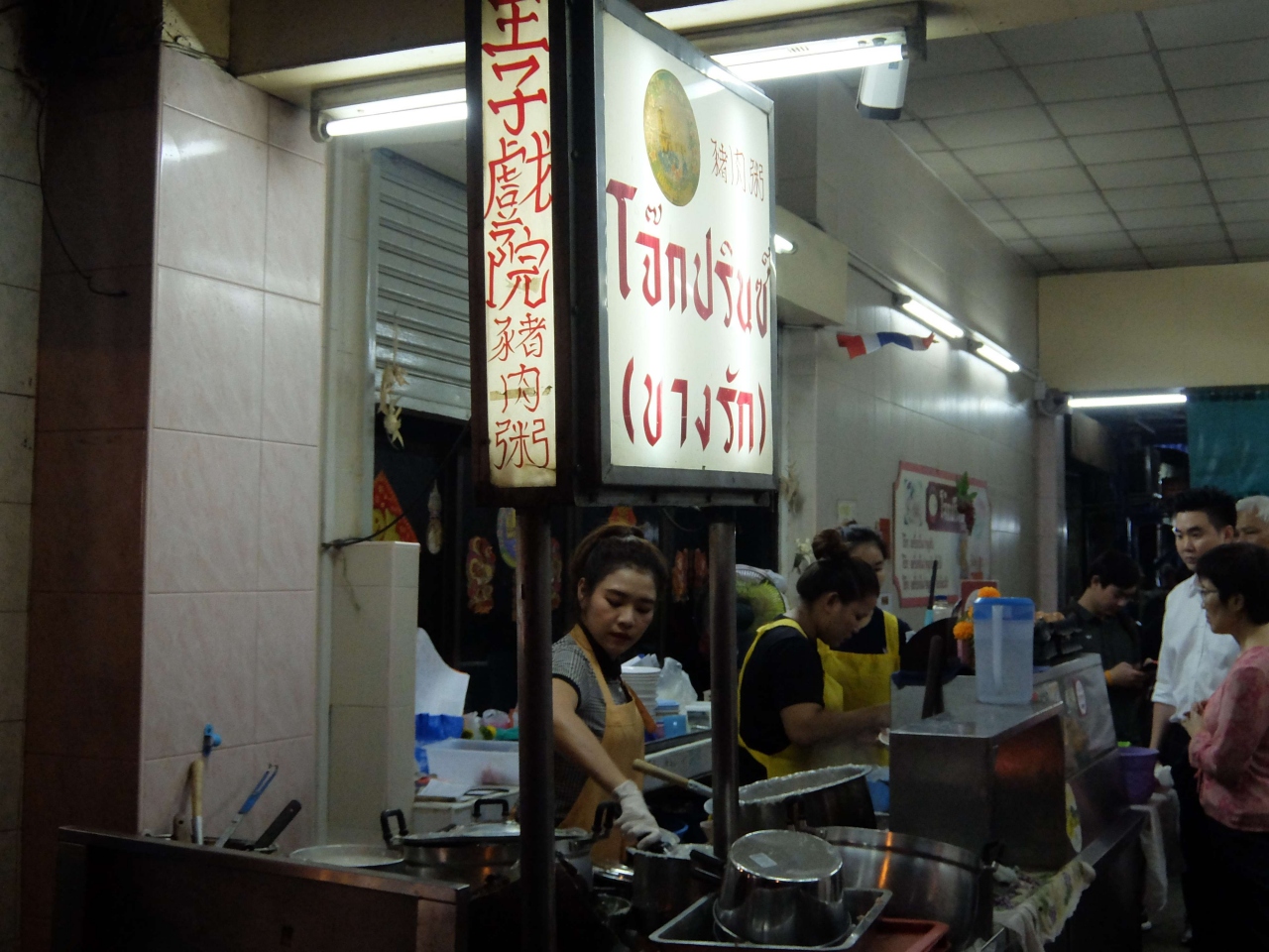 アヒルの炭火焼き店の老舗、店先のケースにアヒルの丸焼きがぶら下がっているのが目印になります。小さな店内はいつも混んでいて現地の人たちと相席。生憎お腹がすいていなかったので中華麺ローストダック乗せを注文。アヒル肉が脂っこさはないのにやわらかくてジューシーで噛み締めるほどに味が染み出します。ただ私は麺汁にどのように味付けをすればいいのかわからず、今少し何かが足らなくて残してしまいました。現地の人は砂糖を入れたり、あれを入れたりこれを入れたりしていました。次はよく調べて是非訪れたいお店です。場所はBTSサパーンタクシン駅からロビンソンを目指しその斜め左向かいです。道路の横断は現地の人にくっついて渡りましょう。