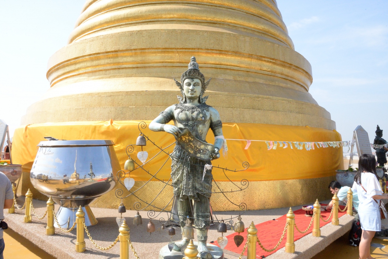 ワット・サケットは、14世紀のアユタヤ時代から存在し、仏舎利を納める80mもの人工の丘が印象的な寺院です。その外観から、「黄金の丘」という意味のプーカオトーンとも呼ばれています。黄金の丘・仏舎利塔へは、外周をめぐらせた階段を上って行くことができます。緩やかな階段は300段あるそうです。のんびりと上って行きましょう。