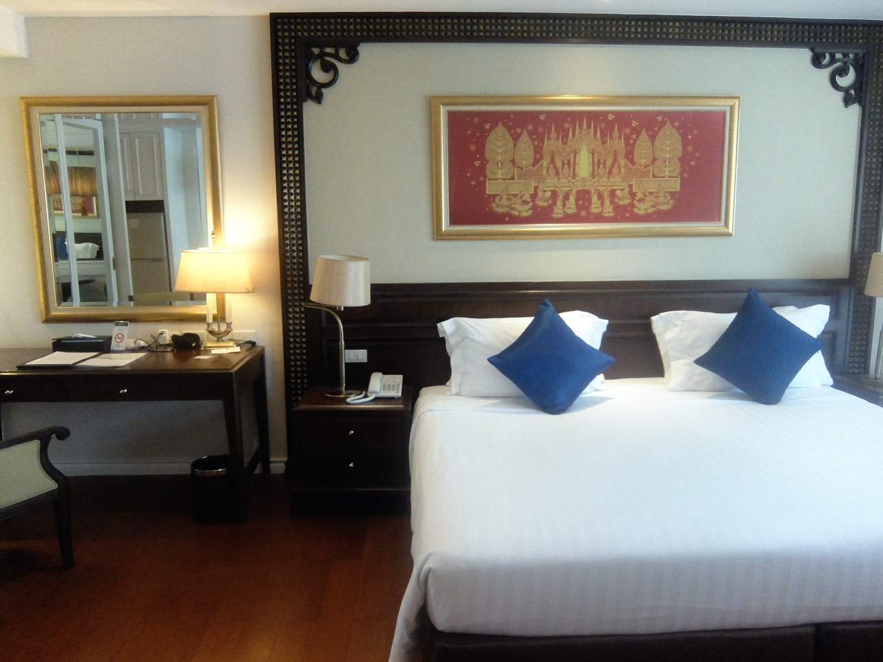 また非常に立地がよくBTSサパーン・タクシン駅から徒歩で数分、ホテルはロビンソンデパートと直結していて地下にはスーパーもあり実に便利です。チャルンクルン通りはいつも賑やかで有名なお店が沢山あります。