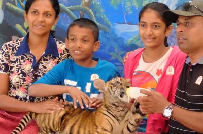 ホテル送迎、入場料、昼食込みの日帰りツアーに参加、パタヤ市内からかなり距離があります。大変広い園内は綺麗に整備されています。トラの他ワニ、ゾウ、ブタなどがいて、トラ、ワニ、ゾウのショーやブタのレースが有ります、結構面白く子供は勿論大人も十分楽しめます。別途有料でワニ釣りや射的など有りますが、なんと言っても赤ちゃんトラを抱っこしてミルクを与える所と、大きなトラの側に行って頭や体に触れる所が特別でしょう。なかなか経験できない事です。写真も撮ってくれます、良い思い出になります。