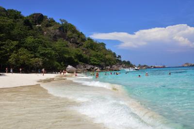 上陸できる島はきめ細かい真っ白な砂浜で、ビーチから海を眺めると夢のようなグラディエーションが満喫できます。