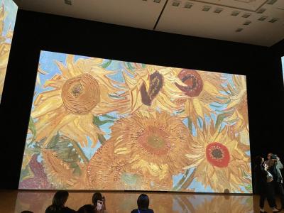 テレビで見ていってみたいと思っていた、兵庫県立美術館で開催中の【ゴッホアライブ】にいってきました。平日でしたがたくさんのお客さんが来ておられて、良いポジションで見ることは難しかったですが、音楽と映像がマッチしており素晴らしかったです。