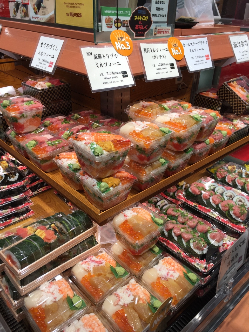 大丸東京店にある お寿司のタキモトさん。あらゆるテレビの東京おススメおべんとう特集で登場してますよね。特に見た目も美しいミルフィーユと言われるお寿司が有名ですね。(オールスターミルフィーユ』は10種類もの海鮮をミルフィーユ状に綺麗にデコレーションしてあります。ボリュームたっぷりで美味しいです。