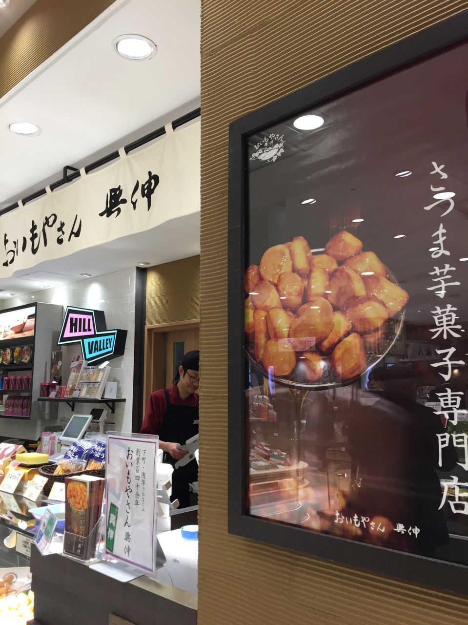 大丸東京店にある 大学芋の興伸さん。都内に数店舗あるようですが、私はいつも大丸東京店で購入しています。お芋さんが大きくて、甘くて 本当に美味しいんです 甘だれが添付されていますので、甘さの調節が出来るのも良いですね。スイートポテトやも美味しいです。