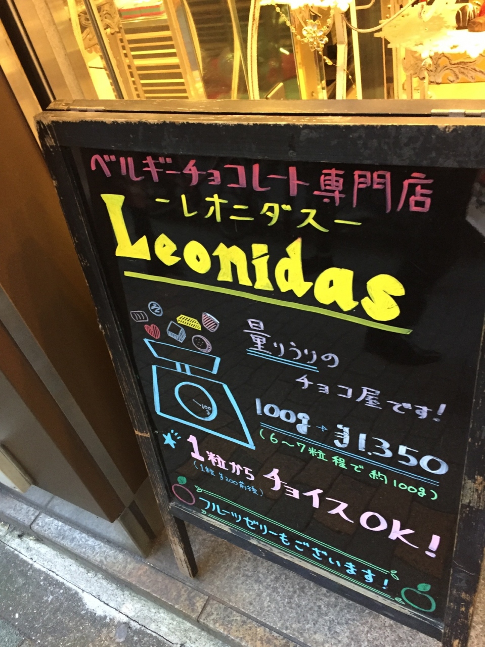 キラキラと可愛らしいショーウィンドウにつられてはいってみると、ベルギーチョコレートで有名なお店でした。狭い店舗にはいかにも美味しそうなチョコレートが並んでいました前のお客さんがマノンカフェというのをオシていたので私もそれ含め数粒購入。お安くは無いので 大切にいただきます。