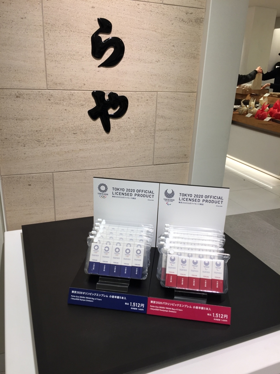 日本橋高島屋地下のリニューアル後 綺麗になったエリアで更に格が上がったようなとらやさん。小さめの羊羹が5本入りで1512円 青色の方がオリンピックで、赤色がパラリンピック仕様です。大河ドラマでもいだてんで オリンピックの物語ですし、これからますます盛り上がるので 話題性があり、ちょっとしたお持たせによさそうですね。
