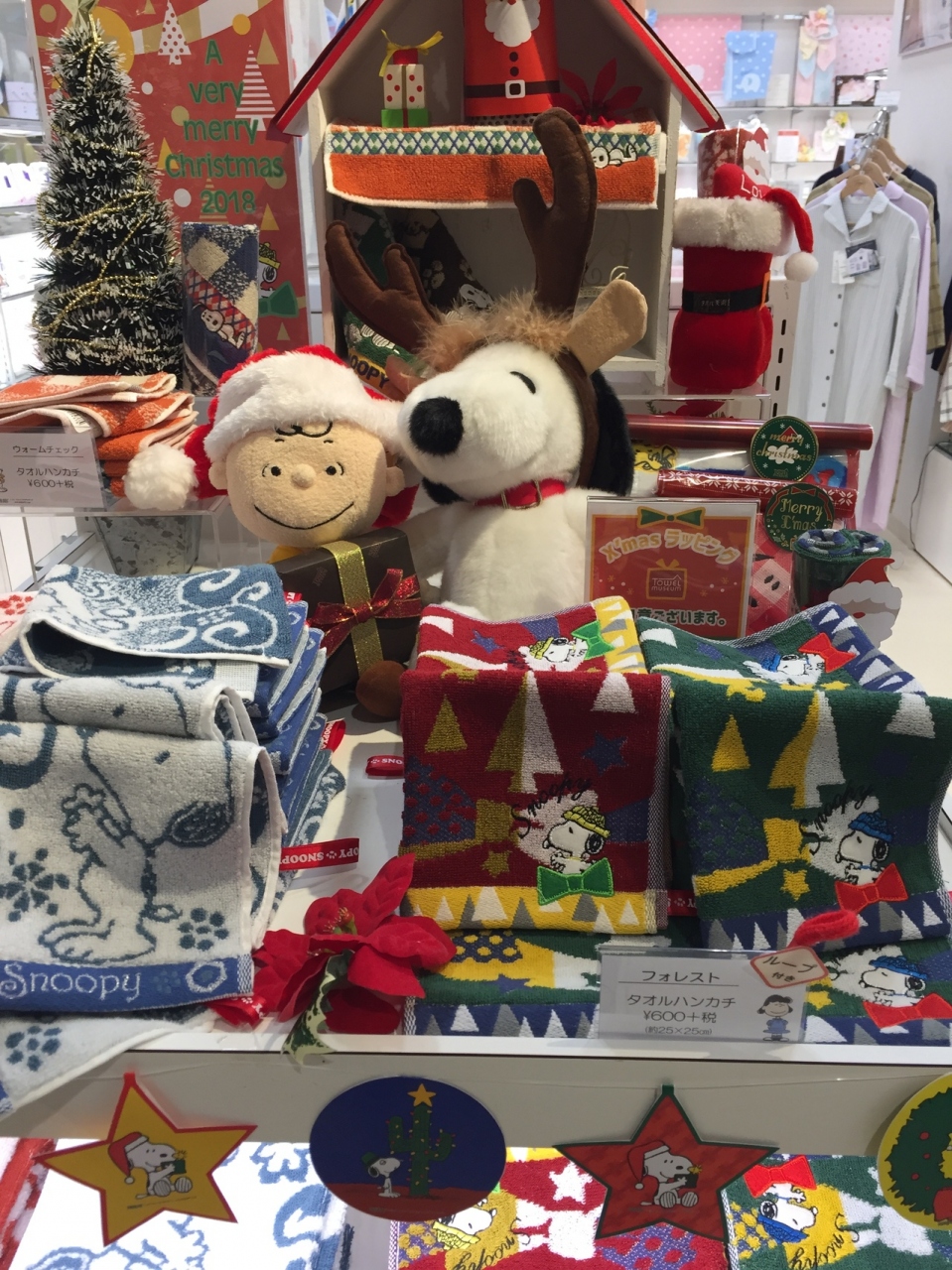 マークイズみなとみらいにあるタオル美術館さんです。クリスマス柄のタオルハンカチを探しに行きましたが、ヒイラギや、クリスマスツリー柄とかじゃなくて、スヌーピーやムーミンシリーズで なんとなくクリスマスっぽい雰囲気の物が沢山ありました。簡単なラッピングも可愛いらしく仕上げてもらいました。