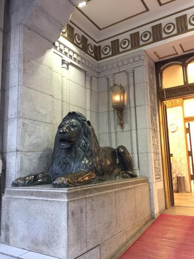 三越百貨店の象徴的なライオン像。大正3年(1914年)に設置されたそうです。朝の部分が色が変わっていましたが、神社仏閣にある像のように お客さんに触られたのでしょうか(笑) 松崎せんべいでは限定品なのかライオン像のプリントのおせんべいが有りますよ。