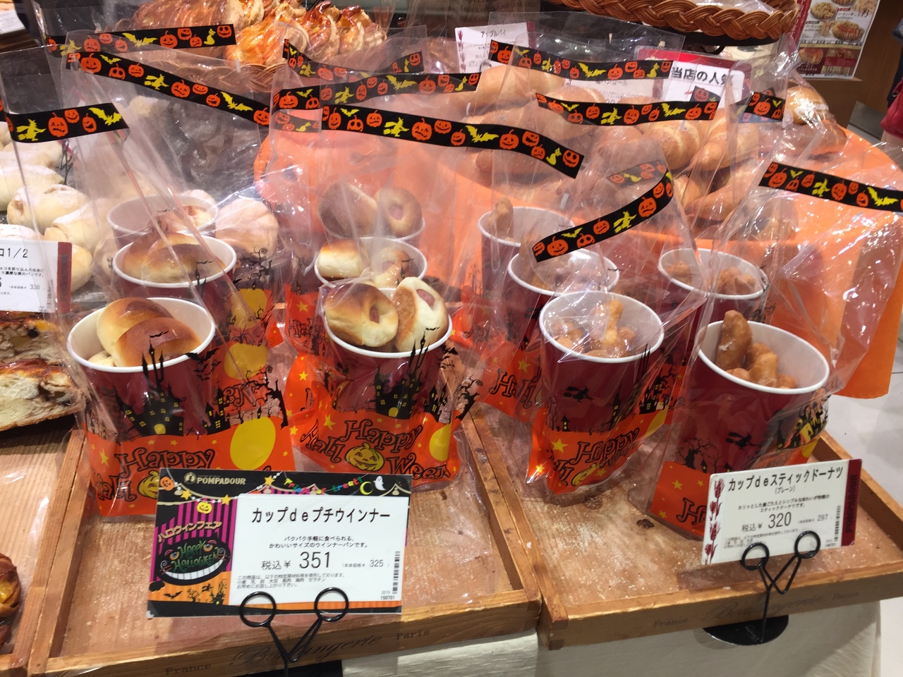 横浜元町が発祥の老舗のパン屋さんポンパドウルさんです。以前は今はなき さいか屋さんの地下に入っていたそうです。なので川崎から店舗が無くなっていたのですが、めでたく2年前ウィング川崎が出来てからは復活したそうです。今はハロウィン用のパンが販売してましたよ。