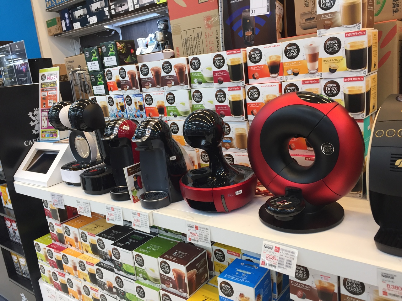 ラゾーナ川崎にあるビックカメラさんです。コーヒーメーカーの種類が多くてびっくりしました 。1500円くらいのものから、しっかりエクスプレッソがいただける20000円代のものまで有りました。店員さんの説明を聞いて もう少し検討してみます。