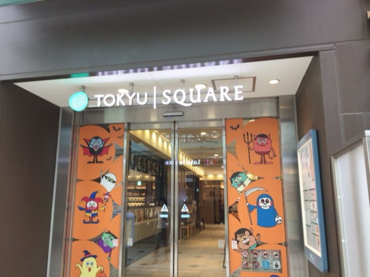 東急電車から東急スクエア改札口から出るとそのまま入店出来ます。ハロウィンが近いということで、館内はあちらこちらハロウィンのデコレーションがあり、楽しかったです。梅園さんではカボチャの蒸し羊羹をハロウィン風にラッピングしたものが売ってましたよ。