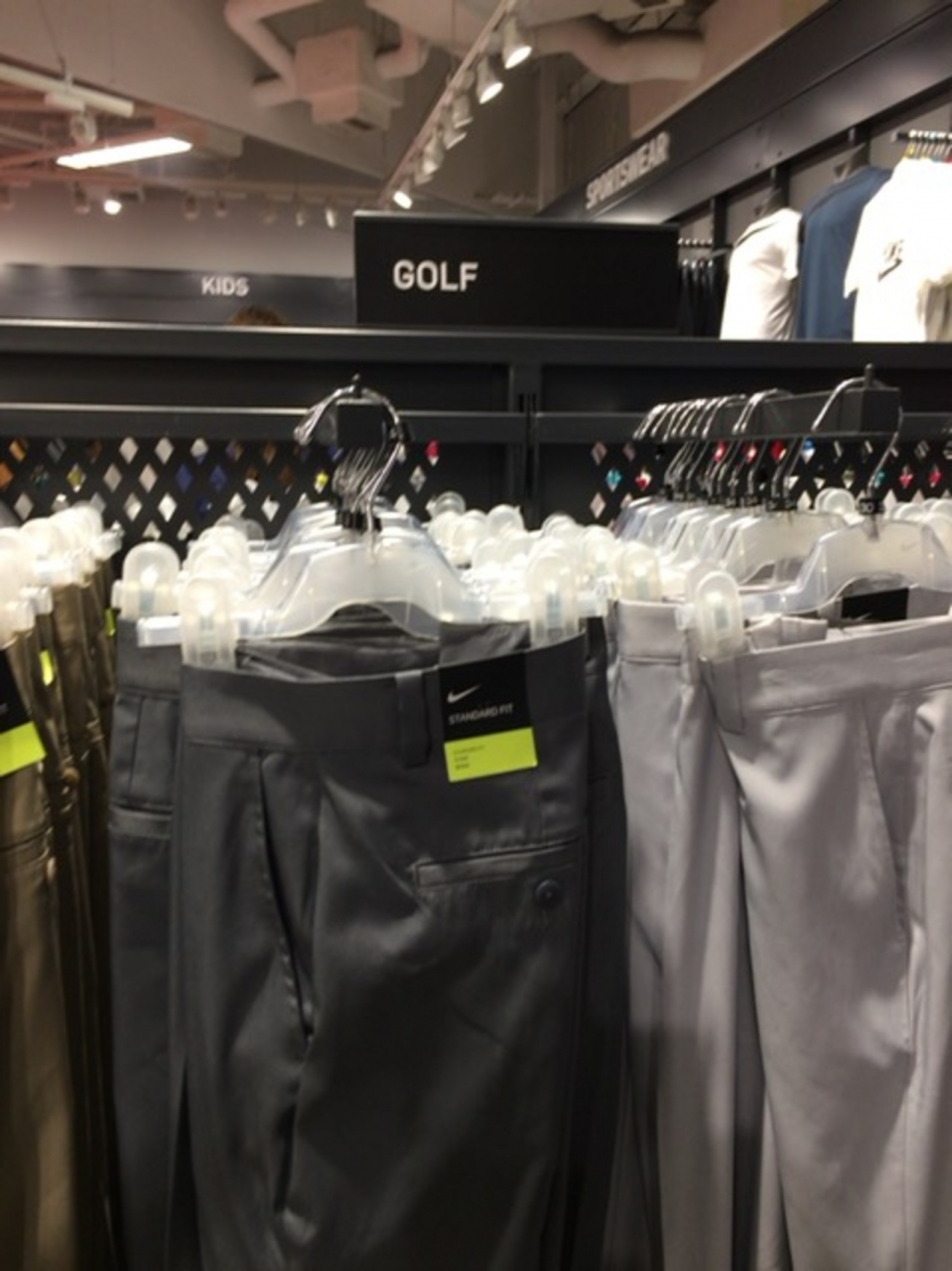 御殿場プレミアムアウトレット内にあるスポーツ用品のナイキです。売り場面積はかなり大きいです。シューズ売り場コーナーも大きいです。少し季節外れの商品などは かなりお安くなっており、時間をかけて自分好みの物を探しました。