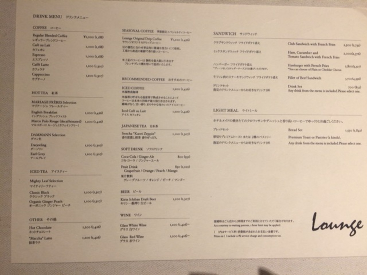 新宿にあるハイアットリージェンシーのラウンジは端っこの方にあり(間口が小さめ?)少しわかる辛かったです。中に入ると想像以上に広かったです。ホテルの場所がらとか、雨だからから、静かめで、ビジネスマンの方が多かったです。コーヒーはとても美味しかったです。