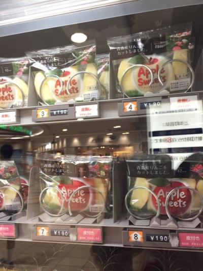 近鉄 大阪上本町駅の 地下中央改札口出たところに リンゴの自動販売機がありました。食べやすい大きさにカットされたリンゴが袋に入って売られています。皮付きの商品、皮なしの商品。はちみつがブレンドされたもの、キャラメルテイストのものなど種類がありました。