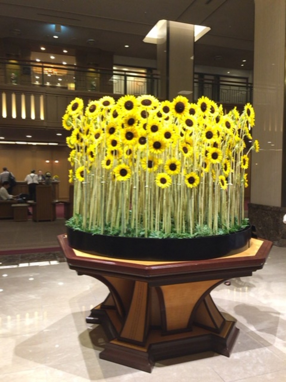 大好きなホテルの一つ帝国ホテル東京です。フロント、ロビーのスタッフをはじめ、各レストランの対応は、さすがと言わざるを得ませんね。とても心地よいです。ロビーに飾られてるお花は 季節ごとに楽しみです。毎年この季節は綺麗なヒマワリですね。