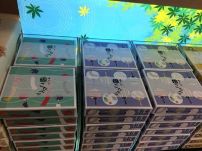 伊丹空港 出発ロビーにある 全日空のおみやげ屋さんです。 兵庫県、京都、大阪のおみやげがずらりと並んでいます。そんな中 一口サイズの生八ツ橋 [こたべ]はうちわ、風鈴、朝顔などの、夏らしいパッケージですごく可愛らしいです。