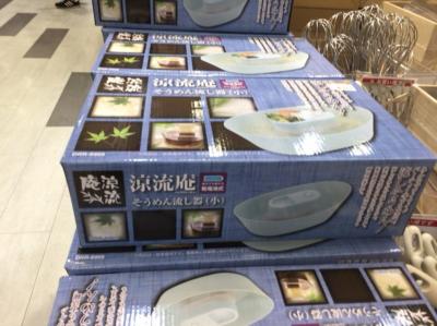 ららぽーと横浜2階にある東急ハンズさん。店頭や店内にはワゴンにたくさんセール品が並んでました。キッチン用具のワゴンには、流しそうめんのうつわがありました、小さめですが1000円なので、仲間うちで楽しめるかなっと。
