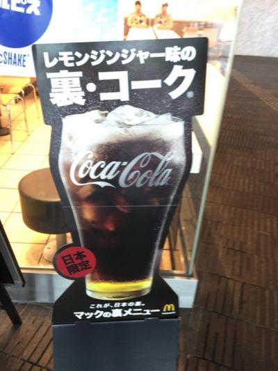 ソリッドスクエア川崎館内は 空調が弱いというか、暑いです。スッキリするものを飲みたいと マクドナルドに行きました。裏コーラというメニューの看板が目に留まり試してみることにわレモンジンジャー味らしいです。たしかにジンジャーの味が濃かったです。たまにはこんなコーラもありかな。