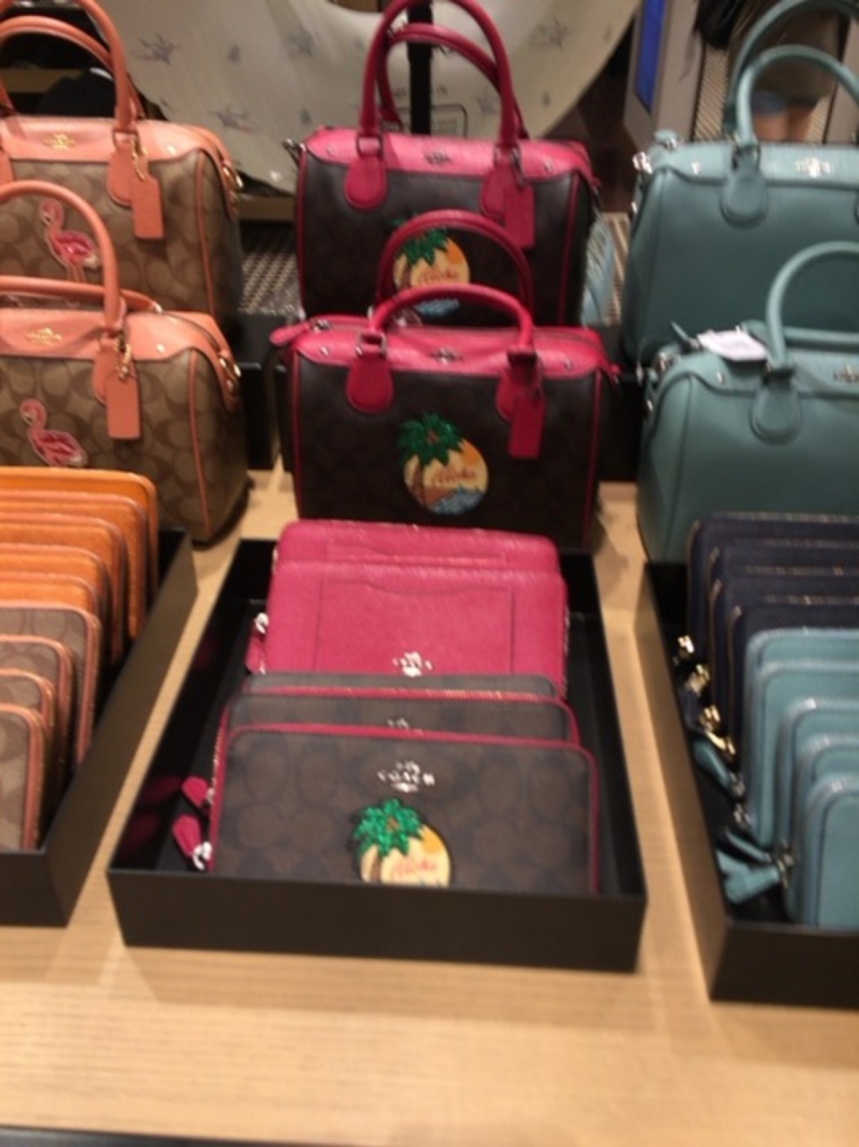 御殿場プレミアムアウトレット ウエストゾーンにある売り場面積の大きなコーチです。品数が多い上にかなりお安くなってる印象です。夏らしい パイナップル柄や、フラミンゴ柄のバッグやお財布などが 半額でしたので、 目につきました。
