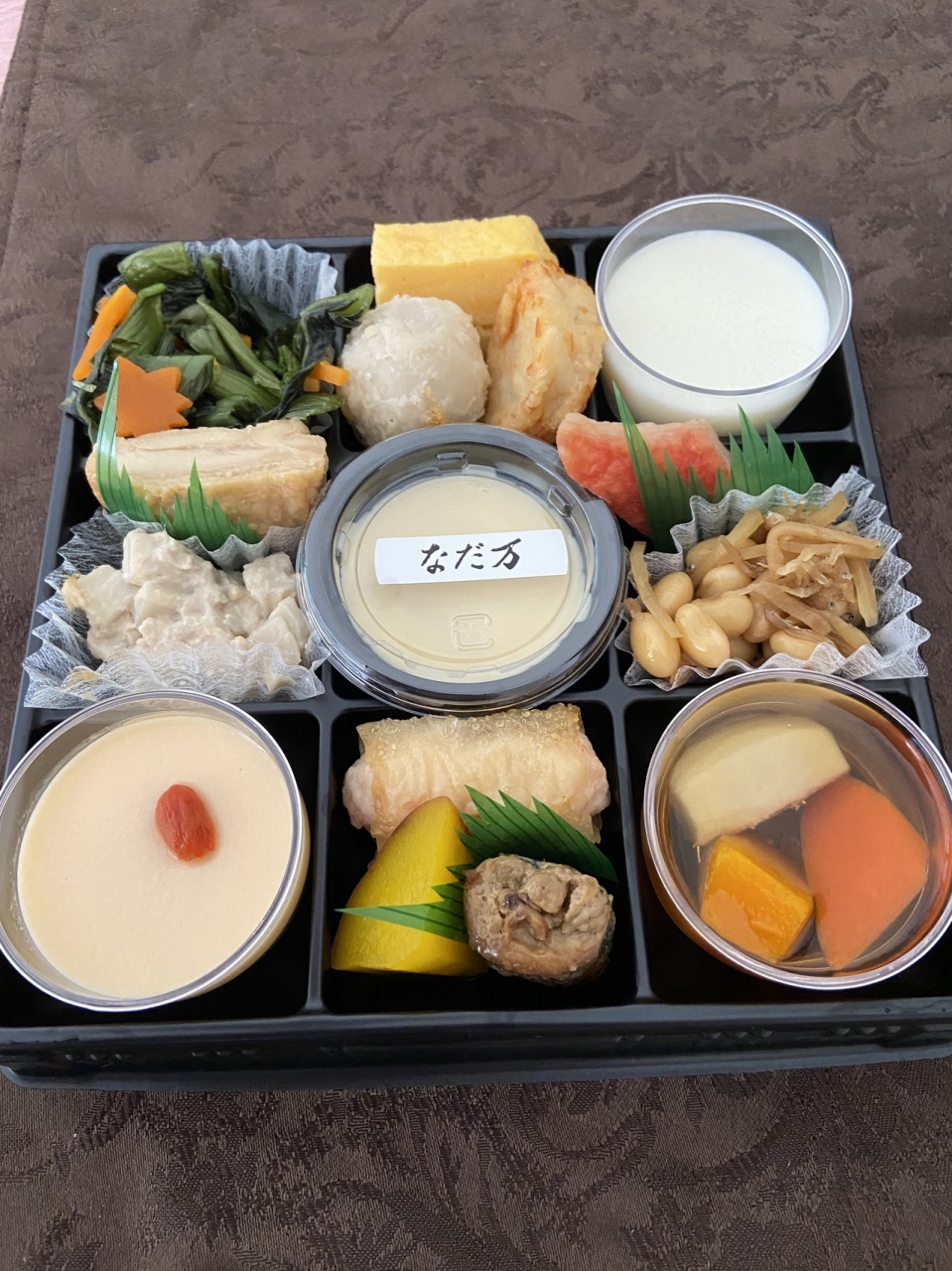 阪急百貨店梅田店の食品フロアにある『なだ万』さんのテイクアウト利用です。こちらのお店は 野菜の焚き合わせや、スープ茶碗蒸し、たべるスープ等々食べやすいお惣菜がたくさんあります。今日は少しづつたくさんの種類が入ったセットを購入しました。