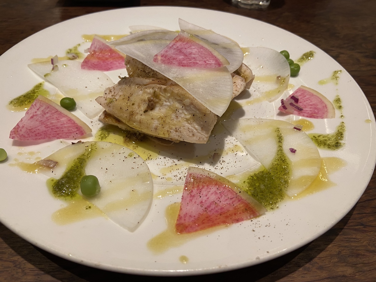 ルクア地下2階の、バル地下と反対側にあるお店です。酒と肴セット1,000円は日本酒3種類(特別純米、純米吟醸、特別本醸造)(ビールも選べます)と、お造り3切、本マグロにぎり3貫が、セットになっており、ちょっと飲んで、食べたい時にピッタリです。