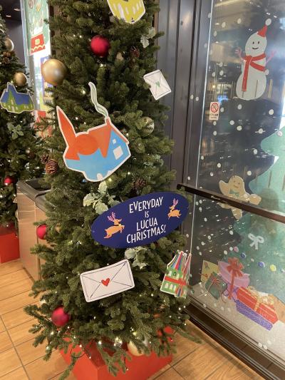 大阪駅前にあるおおきな商業施設ルクアです。ハロウィンが終わり、館内はクリスマスツリーが飾ってあり、ドアのラッピングも、クリスマスモードでした。地下2階のルクアフードホールでは、クリスマスケーキ、シュトーレンの予約も始まってました。
