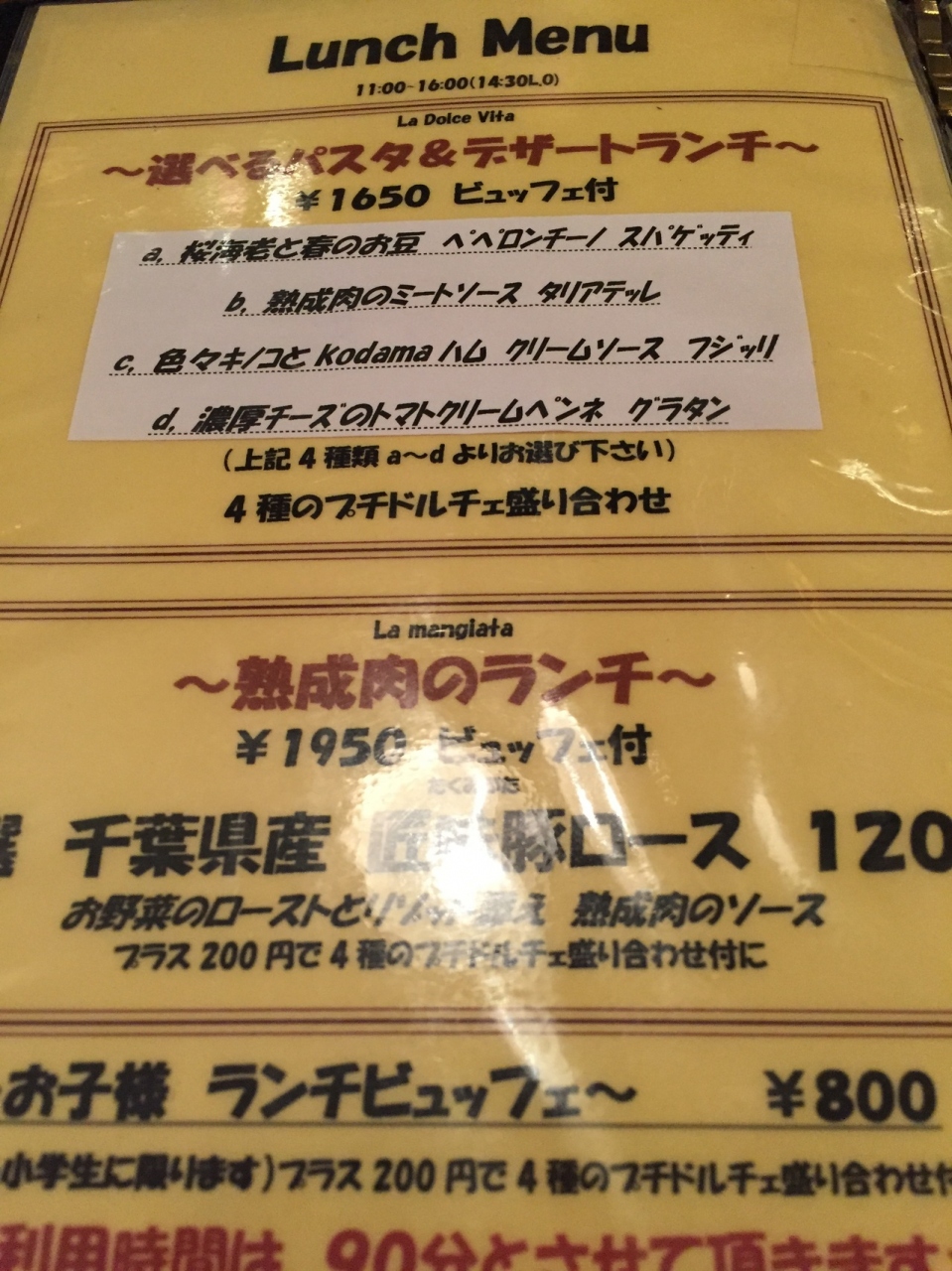 ランチ営業開始の11時に少し早めにお店に着いたつもりでしたが、もう既に15名ほど並んでらっしゃいました。90分制で パスタを選んで、後は生ハム、サラダ、手作りソーセージ、ピクルスなどがビュッフェ形式です。飲み物はアイス・ホットティー、アイス・ホットコーヒー、オレンジジュースなど 最後に可愛らしい4種類のデザートもついてきました。大満足お腹いっぱいになりました。