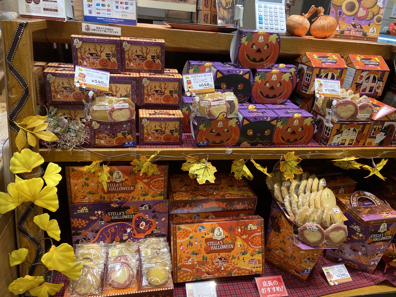 大和西大寺駅ナカにあるステラおばさんのクッキーさんです。時節柄パッケージがハロウィン仕様になっている商品がたくさんありました。価格帯も500円台から~2,000円台と、幅広く、目的に合わせてチョイスすることが出来て良さそうです。