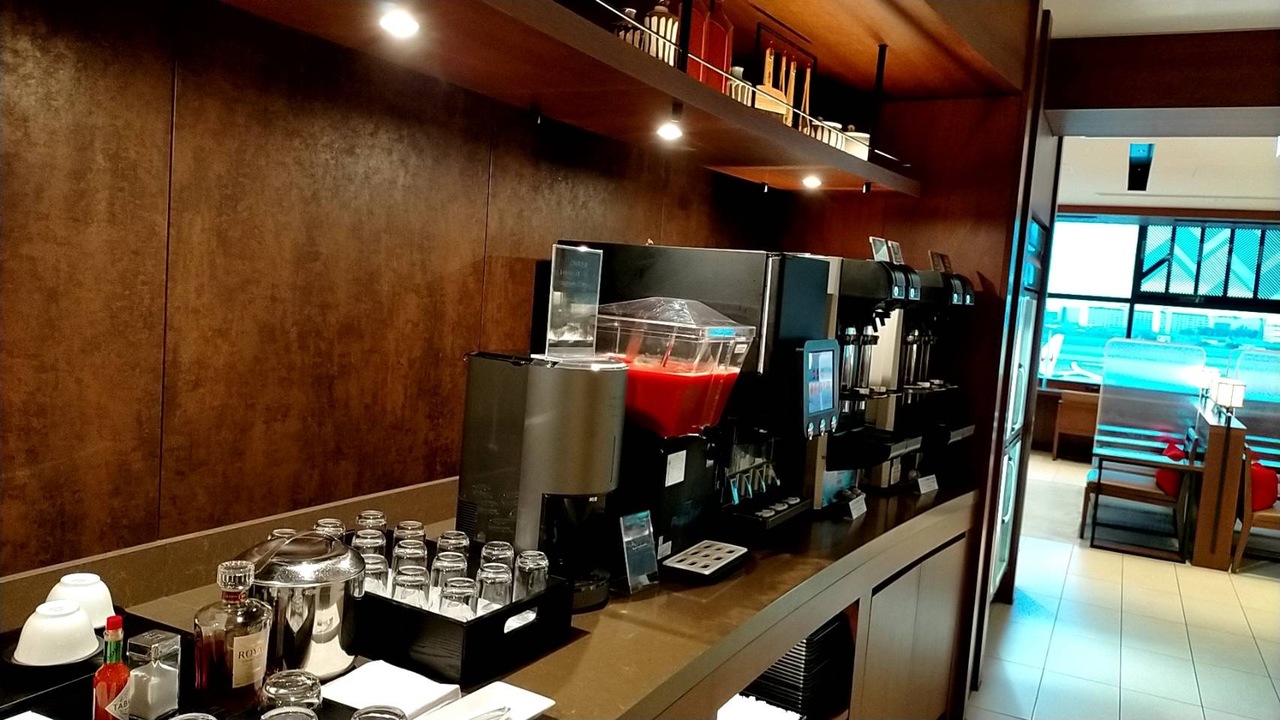 伊丹空港にあるサクララウンジです。保安検査場を通過した後に入り口があります。長めのエスカレーターに乗り3階に行くと、受付カウンターがあるので、そちらでカードなどをタッチして手続きします。セルフでコーヒーやソフトドリンク等頂きながら、登場時間までゆっくり過ごせます。