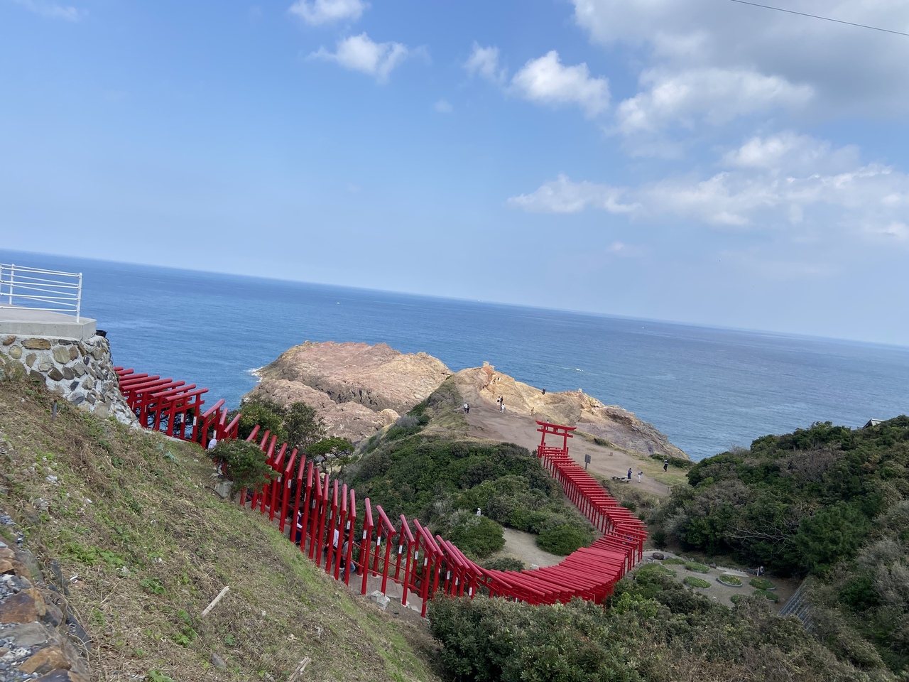 神社にたどり着くまで 途中結構狭い道が有りますので、車通しすれ違う時は前もって手前で待つ等の工夫が必要だと思います。駐車場は1時間300円現金のみだったと思います。海をバックにあれだけたくさんの鳥居の眺めは最高に美しかったです。