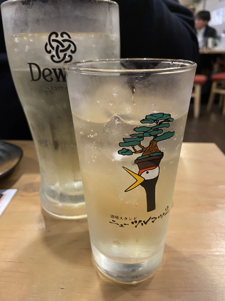 上本町ハイハイタウンにある、ニューツルマツさんに行ってきました。初めて行ったのですが、活気がありました。ハッピーアワーではなんとハイボールが100円で頂けます。夢なようなお店です。食べ物もお安くて、人気があるのが分かります。