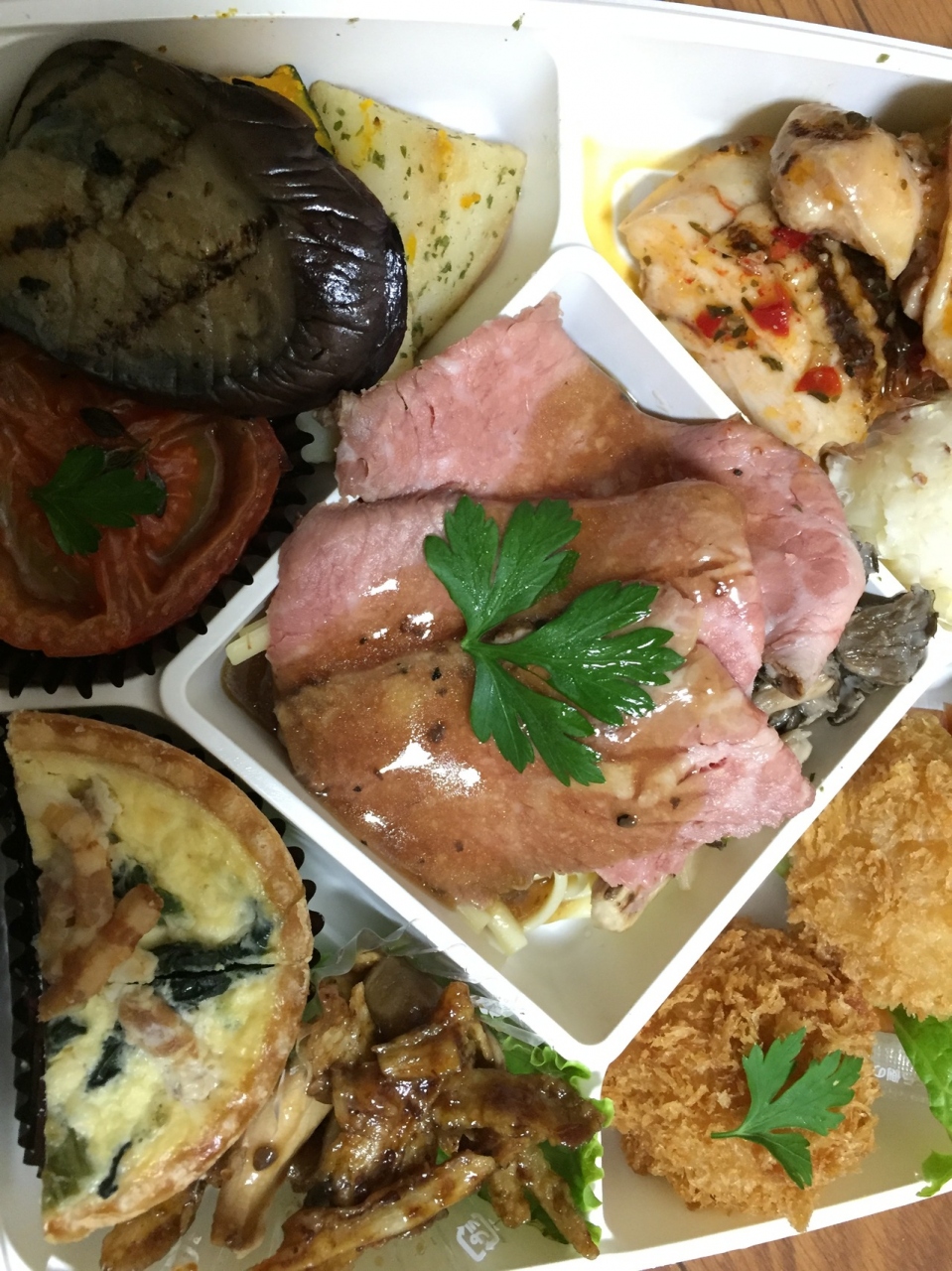 いつも新製品が並んでいて飽きることのないお惣菜のお店でよく利用します。今日はローストビーフ、野菜のグリル、キッシュ、チキンのバジル焼き、ポテトサラダ、ずわい蟹のコロッケパスタなどがワンプレートになってるプレートセットを購入。美味しくいただきました。
