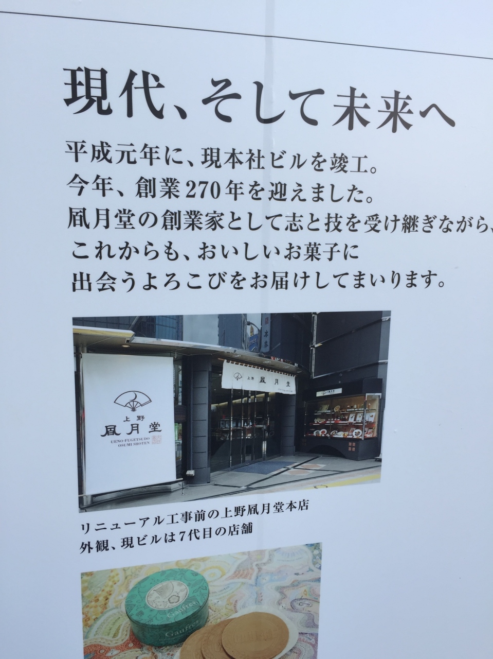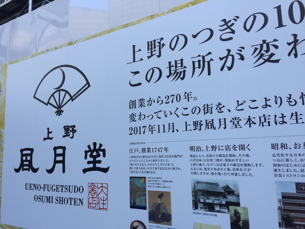 上野に行った時に、ゴーフルを買おうと風月堂さんに行ったら、改装工事中でした。その工事の壁に風月堂さんの歴史などが書かれていて創業270年となっていました。なんと凄い歴史のあるお菓子屋さんだったのですねぇ なんか急にありがたく感じました。11月にオープン予定みたいなので、楽しみです。