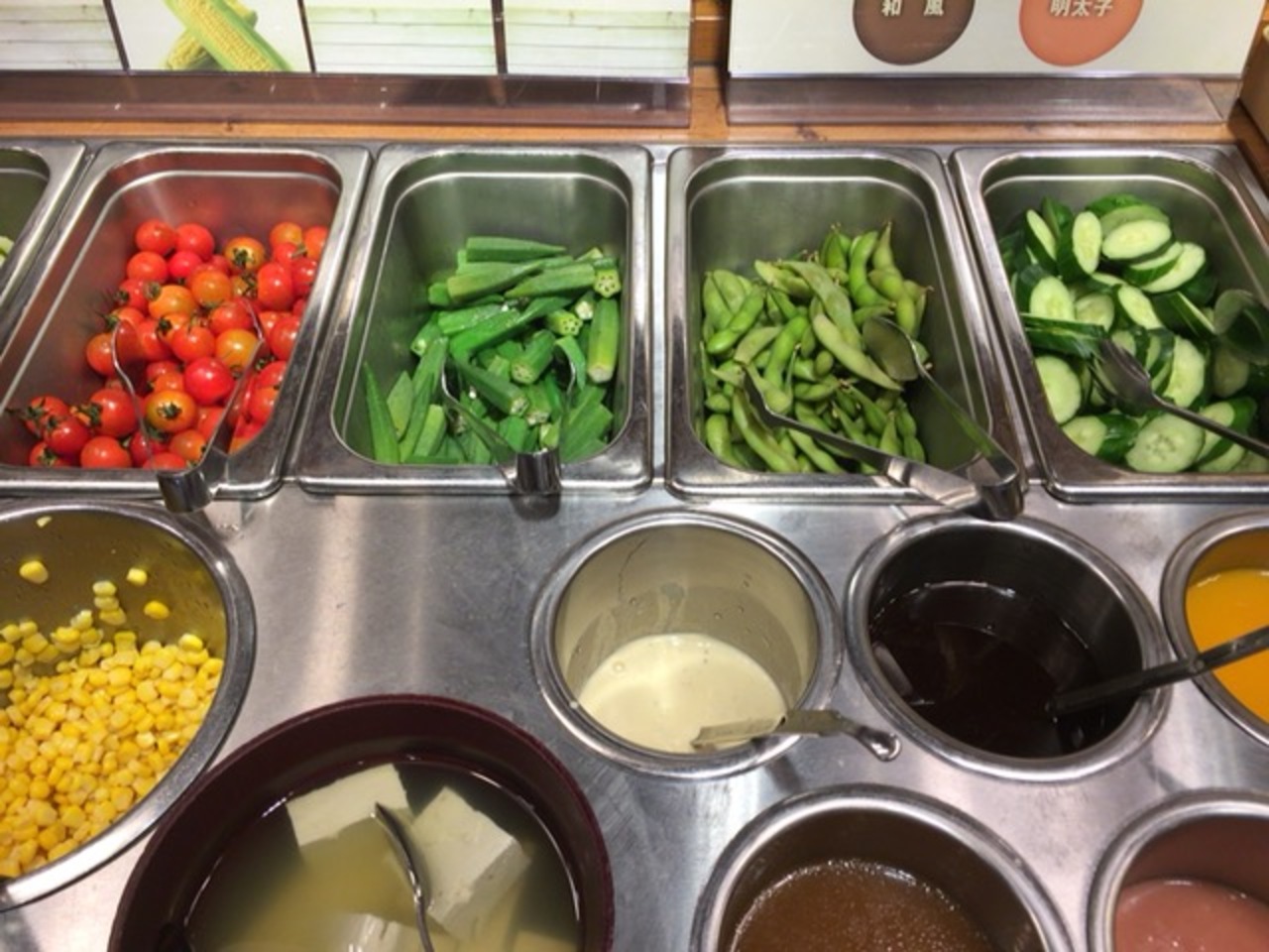 お料理を注文するとサラダバーが付いてきます。ドリンクバーは別途注文です。スタッフの男性も女性も丁寧な接客で気持ちよかったです。サラダバーにはオクラや、お豆腐、ヒジキ煮、お素麺もありました。ドレッシングの種類が多かったです。パンは小さなフォカッチャが3種類ほどと、プチパンでした。自分で温めるようのオーブントースターが置いてありました。デザートのパインや、コーヒーゼリーも 美味しかったです。- 旅行時期
