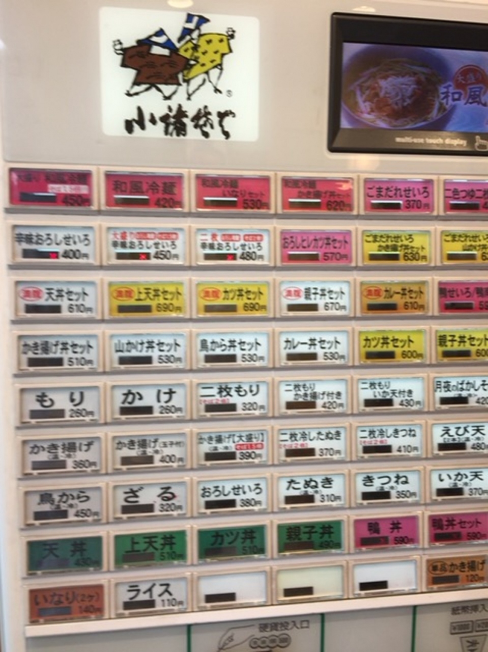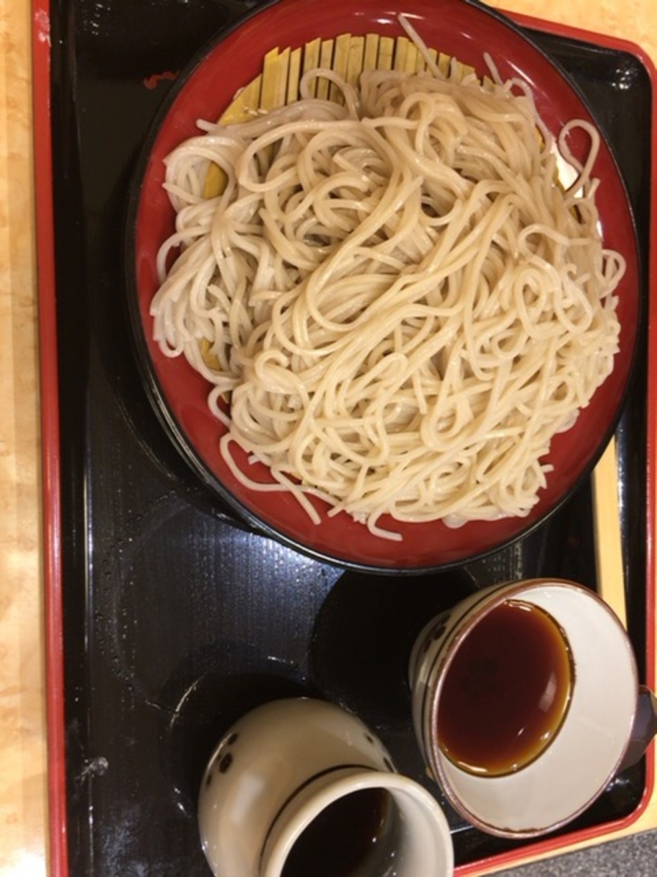 時間が無いときの食事に 小諸そば。店内はカウンターとテーブル席が有りました。テーブラの上には 柚子味の七味、普通の七味、小梅、わさび、刻みネギが置いてあり その日の気分でセルフなのは嬉しいですね。おねぎたっぷり頂きました。夏の暑い日ざるそばアッサリしてておいしかったです。