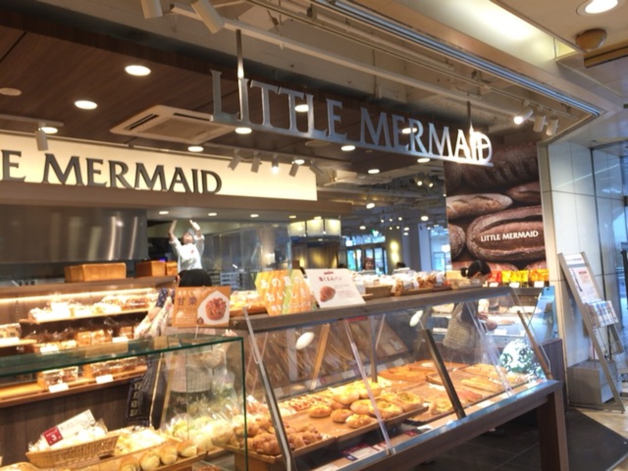 東急1階にあるリトルマーメイドさん、イートインが有るので入門。広くて心地よいです。コーヒーだけのつもりが 美味しそうな匂いと、綺麗で美味しそうなパンが並んでおり パンも注文してしまいました。焼きもろこしパンは夜のワイン用にテイクアウトしました。