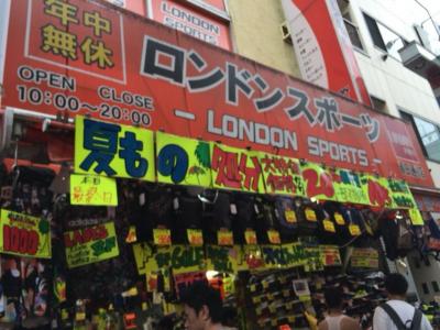 上野にあるロンドンスポーツさん。大きな段ボール箱にスポーツ用のTシャツ、パンツ、ジャージなどが ギュウギュウに詰め込まれていて、その中から 手を伸ばして好みの物を探します。本当に安いので もし自分の探してら物が有ればかなりラッキーだと思います。激安なのに、店員さんは嫌がらずにサイズなど探してくれます。