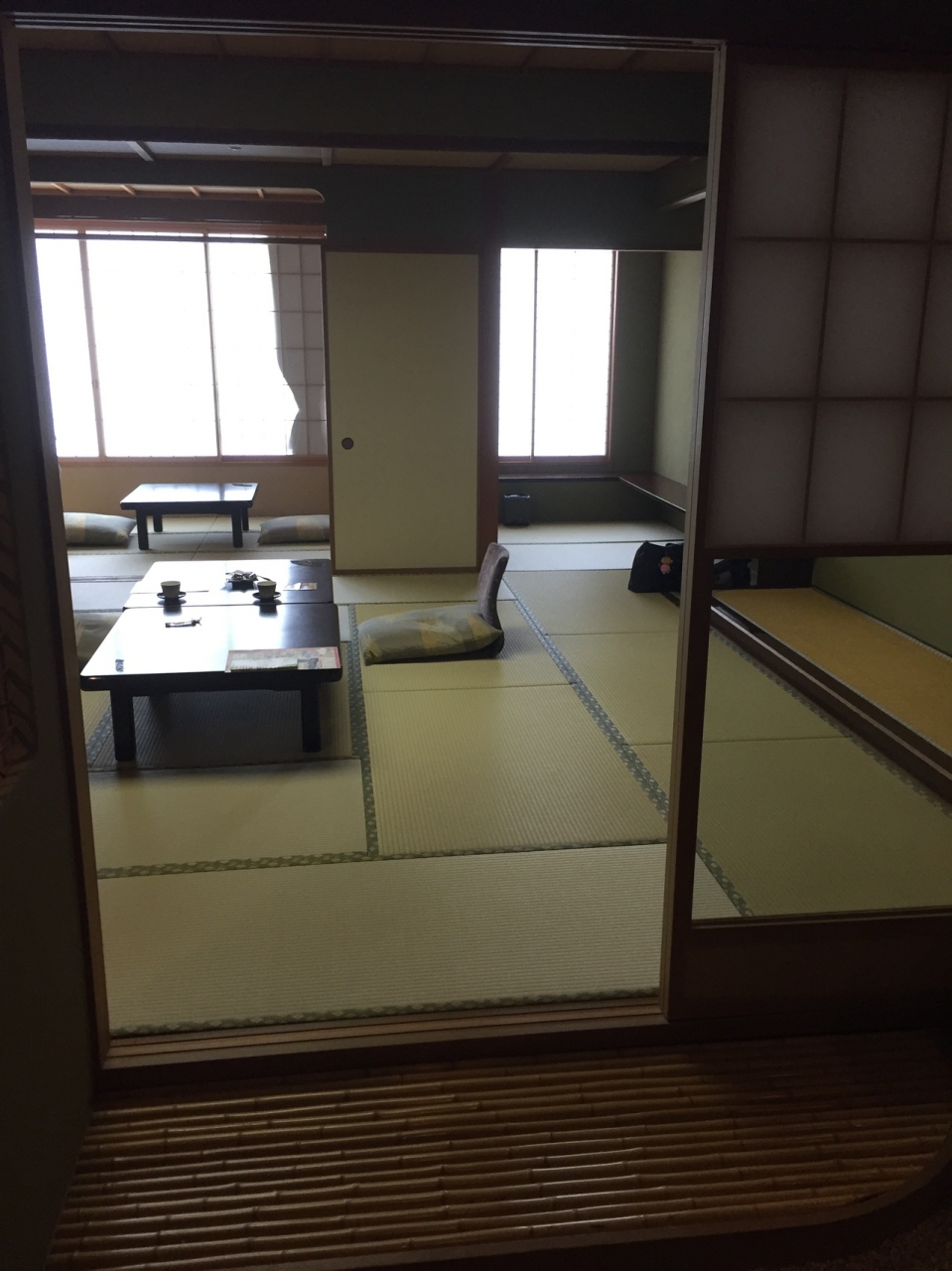 チェックインは15:00だったのですが 車だけ先に置かせてもらおうと14時にお伺いした時にはもうエントランスにはお迎えの着物姿のスタッフの女性が数名いらっしゃり、チェックイン出来ました。いわゆる大型旅館ですが、スタッフの方は皆さんにこやかで 気持ち良かったです。お部屋係の人が浴衣のサイズなど気を配って頂き 有り難かったです。ホテルから湯畑まで近いのですがシャトルバスの運行がありコレも楽で良かったです。お夕飯後にもバスでライトアップされた湯畑を楽しむ事が出来ました。