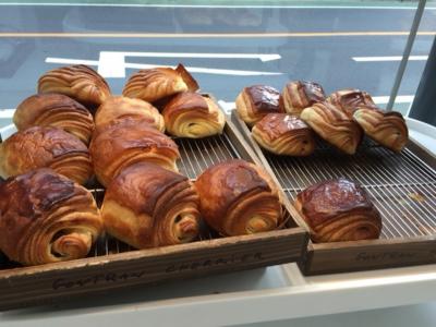 外観がとってもオシャレなパン屋さん、いやパン屋さんではなくブーランジェリーです。店内も白を基調にとってもシンプルで綺麗です。イートインコーナーでパンとラテを頂きました。パンは温めてもらうこともできます。